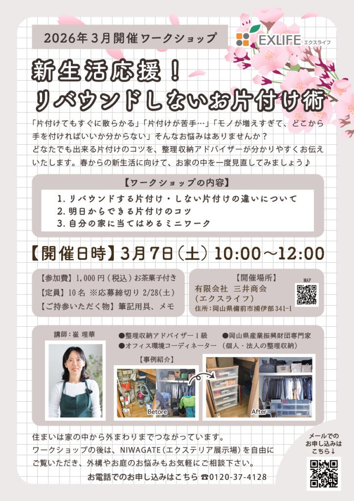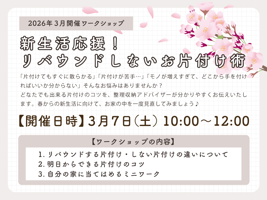 2026年3月のワークショップは、整理収納アドバイザーによる