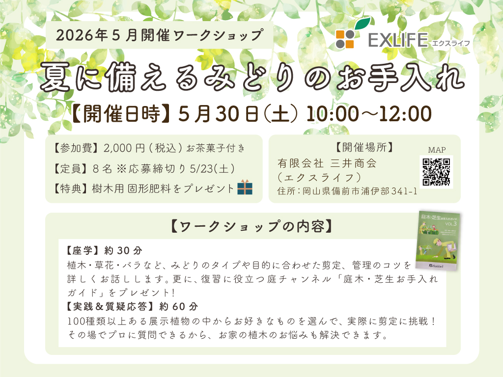 エクスライフでは、「夏に備えるみどりのお手入れ」と題した