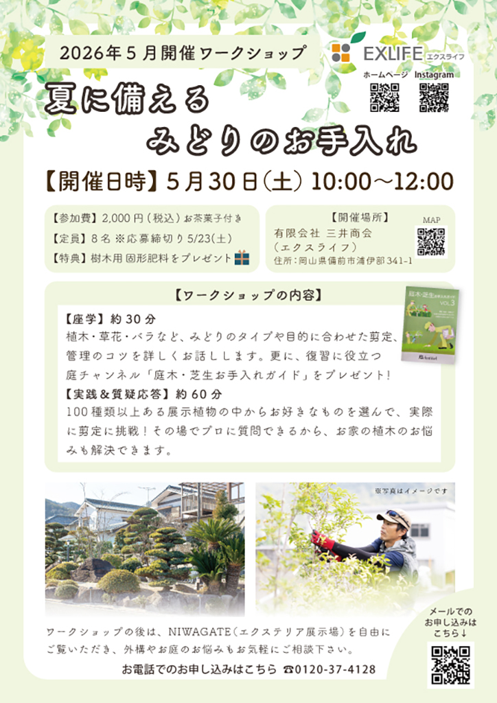 【5月開催ワークショップ】夏に備えるみどりのお手入れ講座のご案内