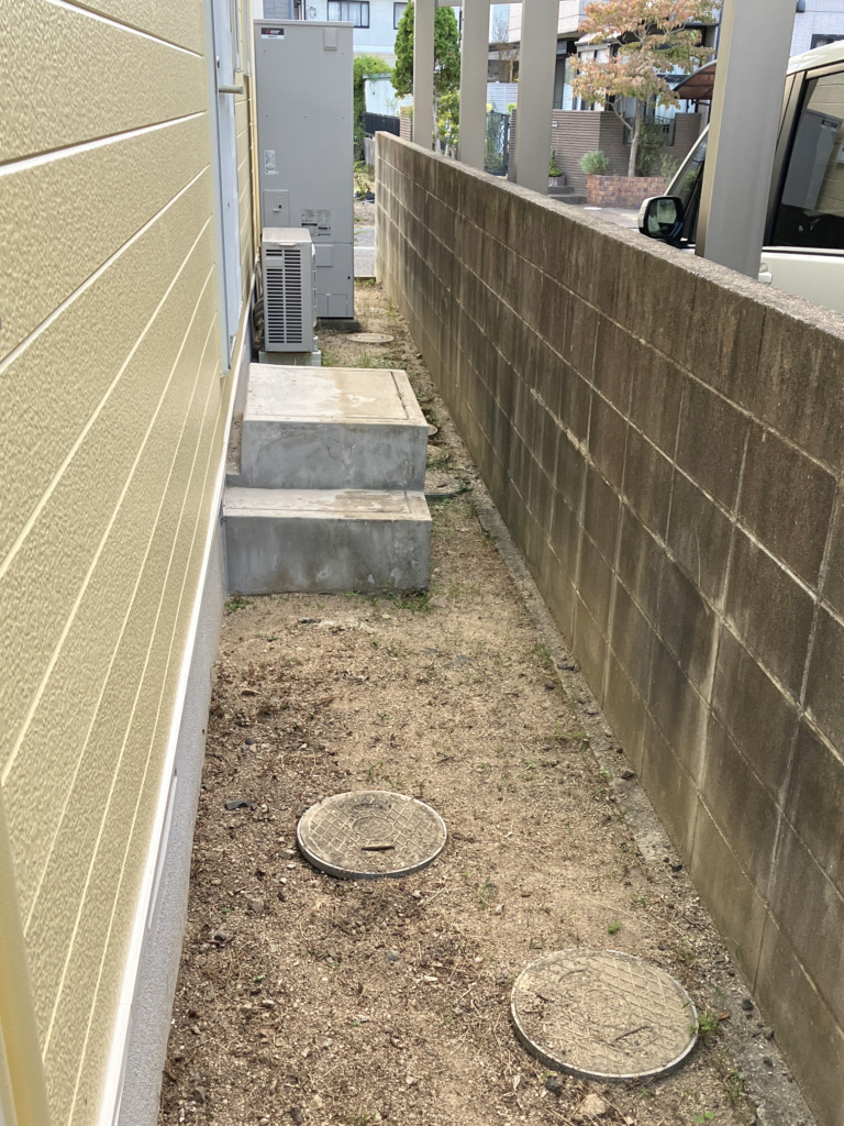 西側の犬走りは道路と隣接していて外から見られやすい場所の為、