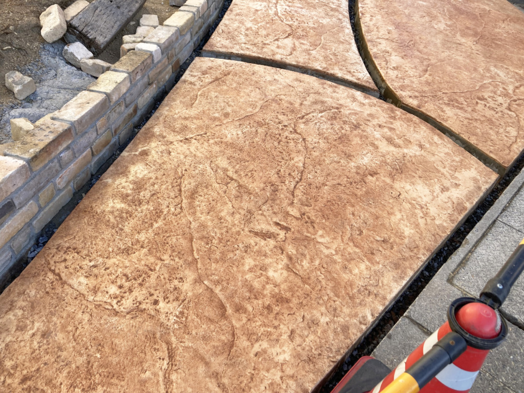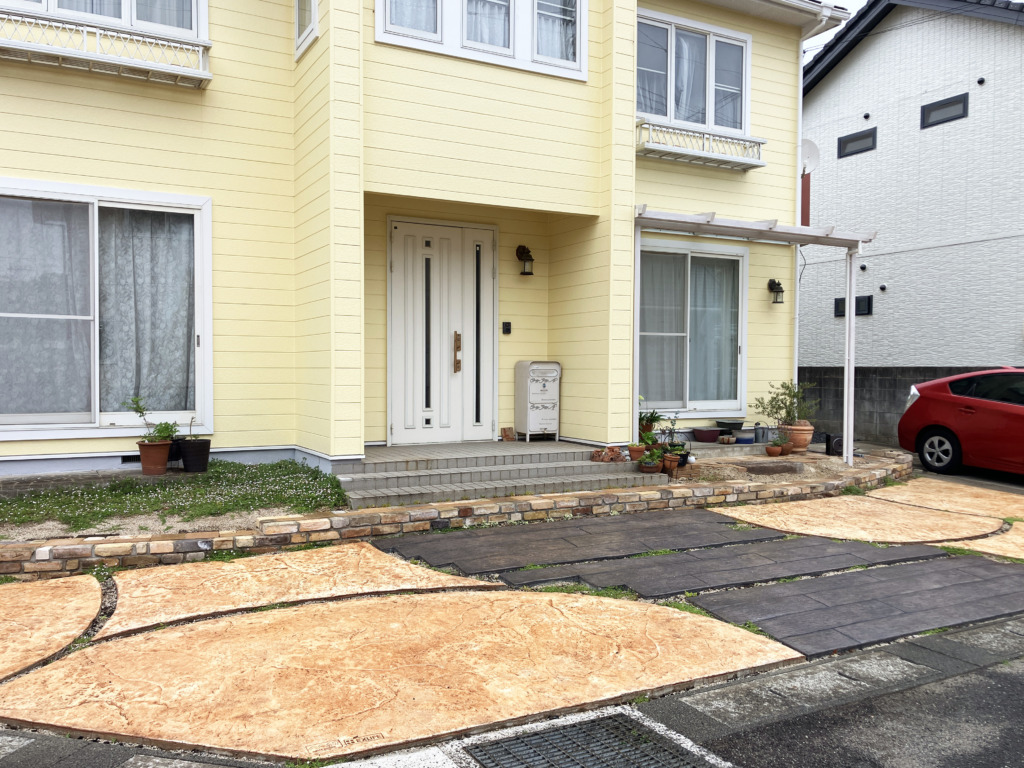 見栄えも抜群で、車が乗り入れても安心のスタンプコンクリートを採用。