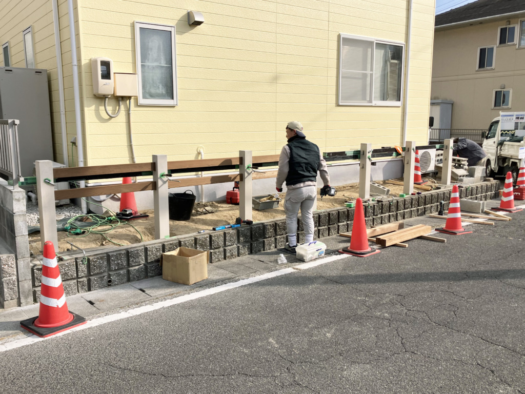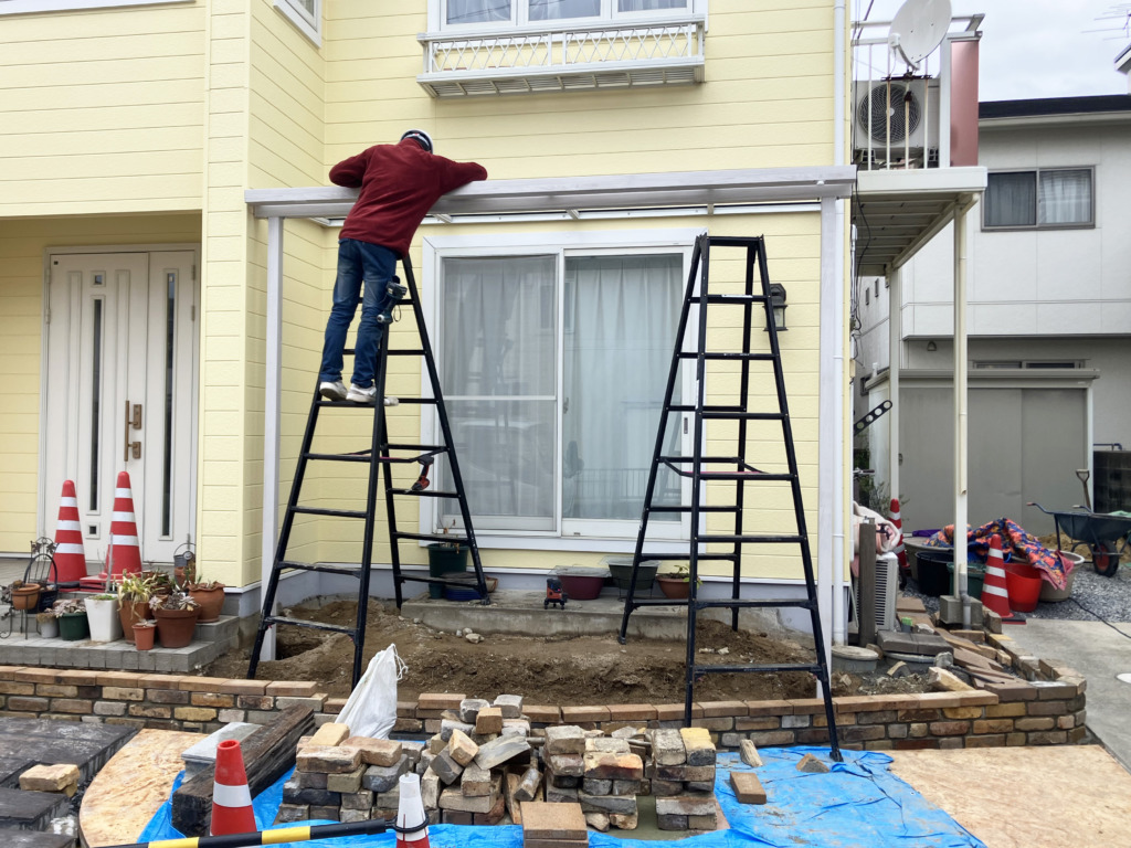 まずは、既存のブロック塀や階段アプローチ、植物等を解体撤去。
