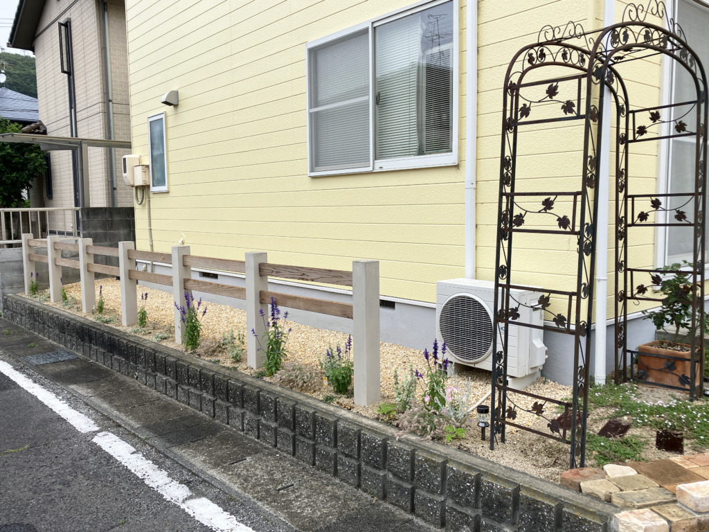 シンプルなウッドフェンスを設置して、すっきりとさせました。